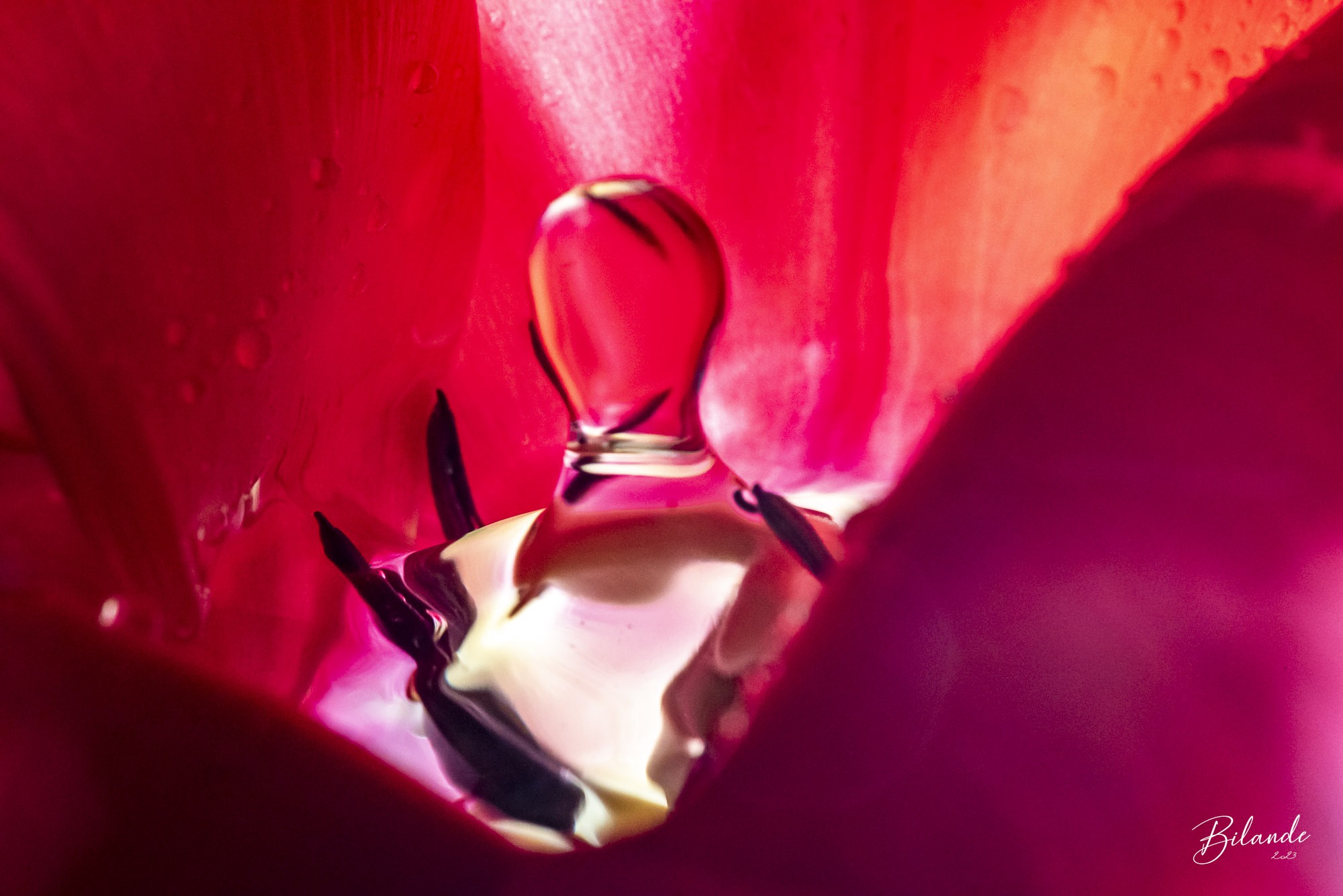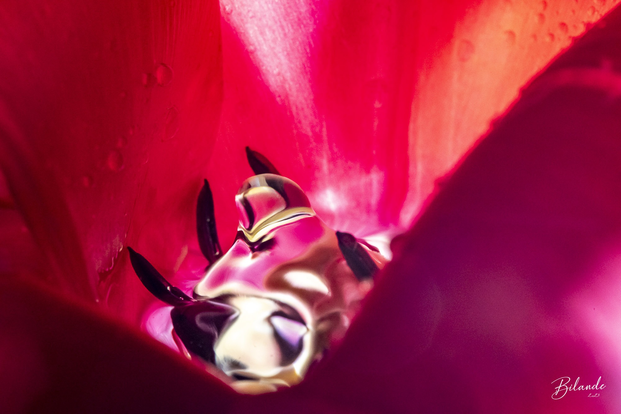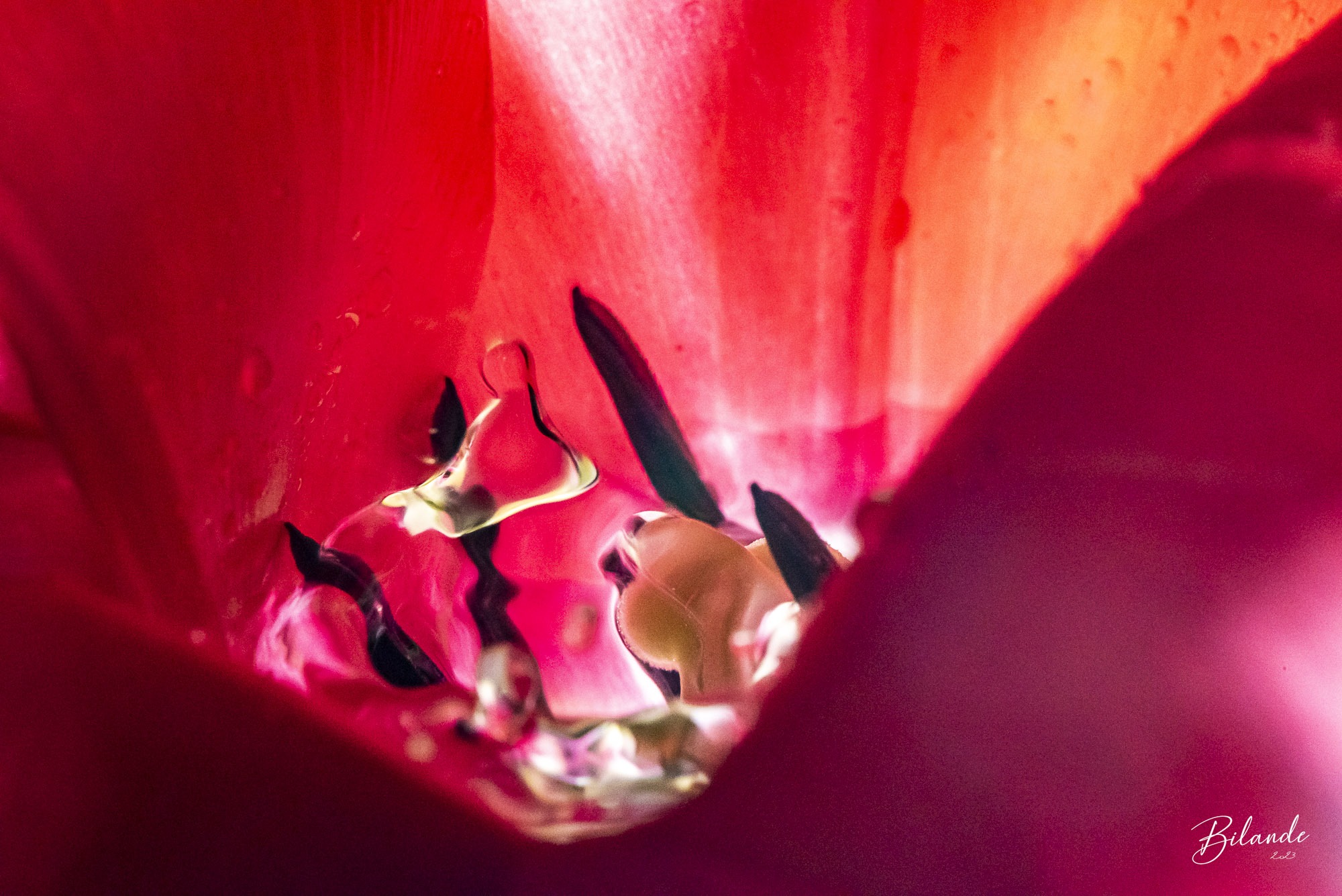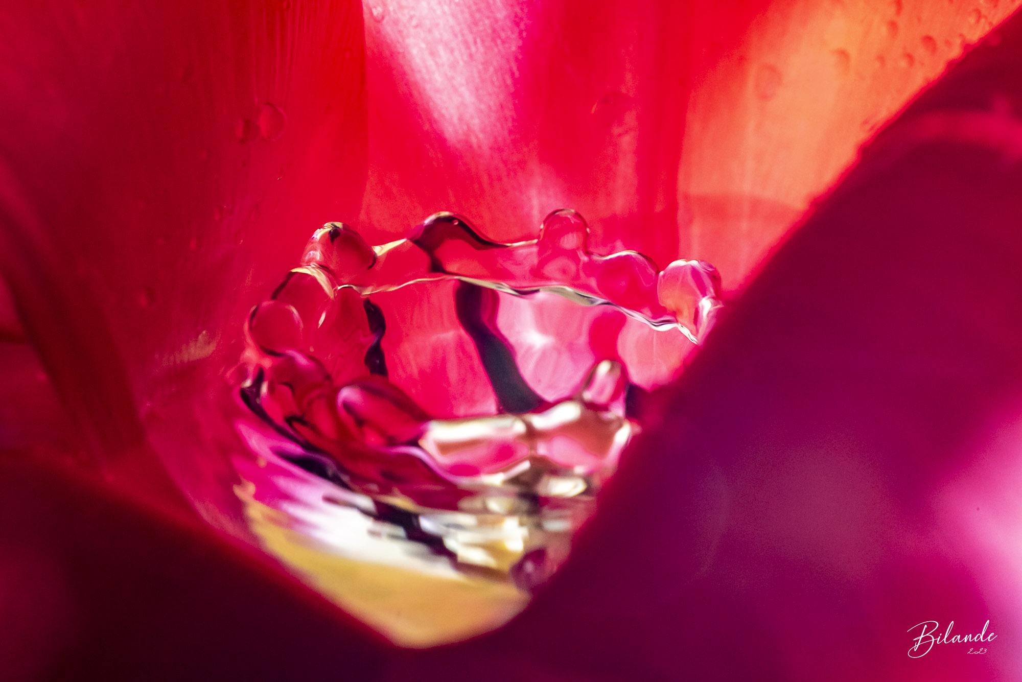 Le monde de la macro est un monde magique… Nous avons déjà tous vu ces photos d’une goutte qui tombe dans l’eau… Et si cette goutte d’eau venait éclater à l’intérieur d’une tulipe rouge ?